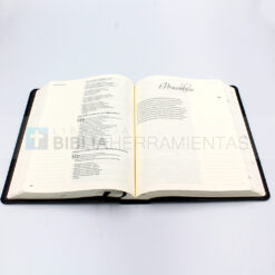 La Biblia está hermosamente encuadernada con piel genuina y tela impresa. Esta incluye una página de presentación, un plan para leer la Biblia en un año y un resumen de cada libro de la Biblia. Con una garantía vitalicia, usted podrá dejar a sus hijos un tesoro al registrar sus reflexiones y pensamientos en esta Biblia.