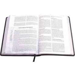 Biblia de Estudio de Apologética. Diseño bicolor de páginas, perfiles de apologistas cristianos, cinta marcadora y mapas.
