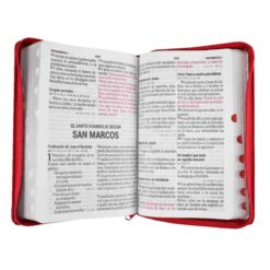 Biblia mediana, versión Reina Valera 1960, índice en el canto, palabras de Jesús en rojo y letra gigante.