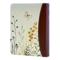 Biblia Reina Valera 1960 Tamaño Portátil, letra Grande 11 puntos, imitación Piel Floral Marrón, canto pintado y colección Primaveral.